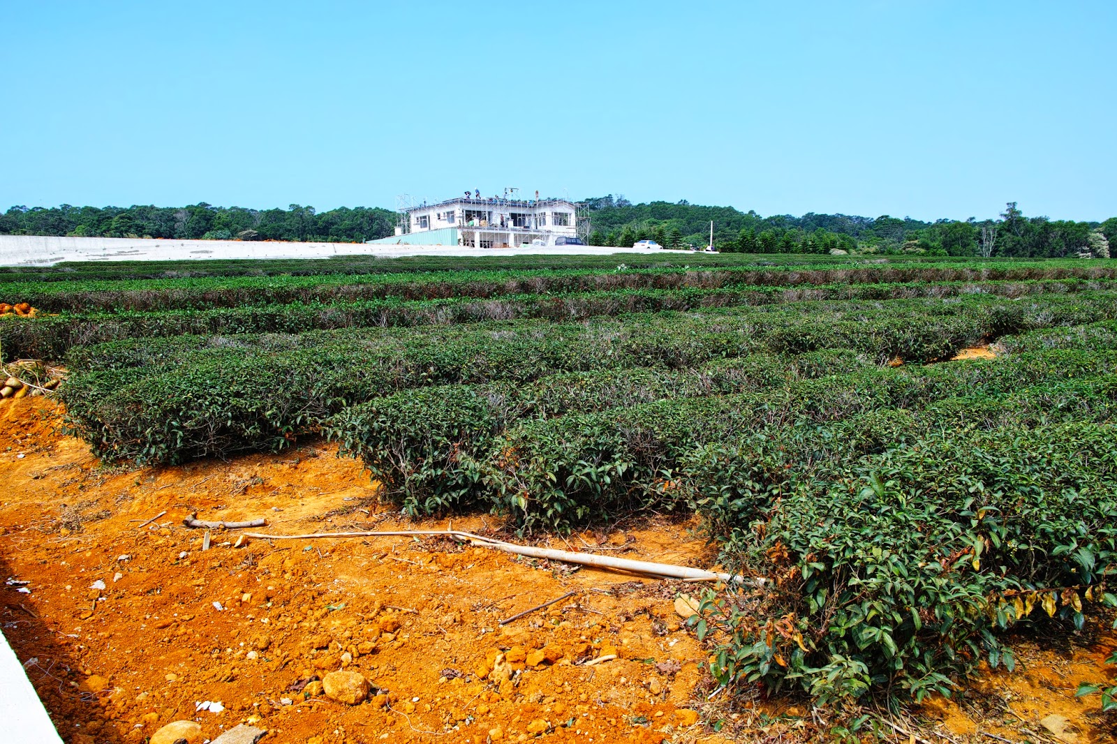 路繼續往上爬升,但坡度和之前比起來是緩和了許多,接著映入眼簾的是一大片茶園,這是我沒有意料到的,而天空的雲層也無聲無習的消失了,剩下的只有藍天。